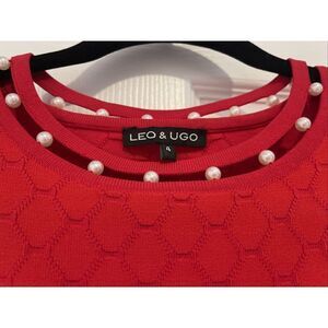Leo & UGO Women RED Pullover Sweater With Pearl Neck And Sleeve Size 4 Holiday. Condition is Pre-owned. Shipped with USPS Ground Advantage.