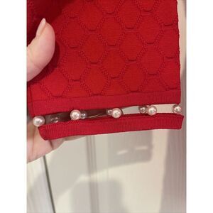 Leo & UGO Women RED Pullover Sweater With Pearl Neck And Sleeve Size 4 Holiday