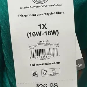 Time And Tru Green Strapless One-Piece Cut Out Ribbed Swimsuit, Size 1X 16W-18W