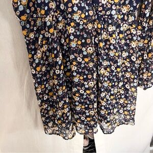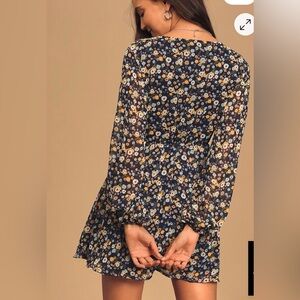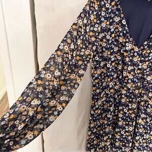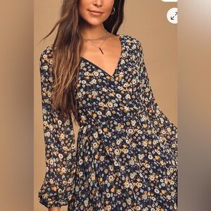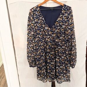 Lulus Bloom For Me Navy Blue Floral Print Long Sleeve Skater Dress Size XL