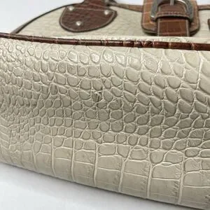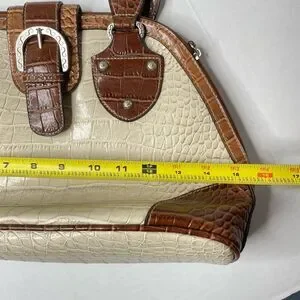 Y2K Western Buckle Shoulder Bag | Cream Brown Croc Embossed Vinyl Satchel Retro Glam Rockabilly