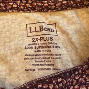L.L. Bean Supima Cotton Turtleneck Top Women’s 2X Plus Burgundy Floral Print
