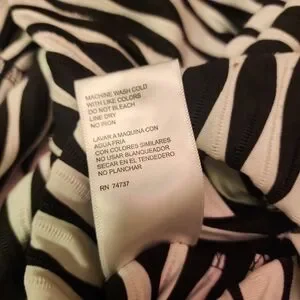 Neckline: Unique V-neck with a solid black trim that runs down the center of the bodice