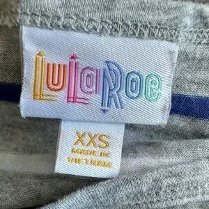 LuLaRoe short sleeve striped top size XXS RN#142161 Materials 95% rayon 5% spandex armpit to armpit - 22" sleeve length - 6.5" total length - 31"