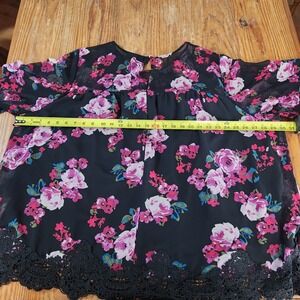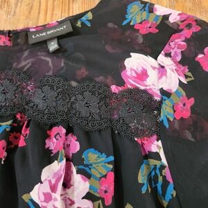 Lane Bryant Sz 26 4XL Black Floral Blouse Tunic Roses Lace Trim Mesh 1/2 Sleeve