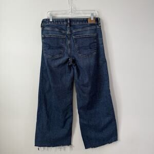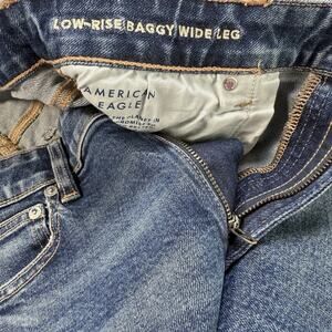 American Eagle Stretch Low Rise Baggy Wide Leg Jeans Raw Hem Size 8 Short Grunge Boho Casual