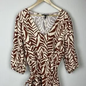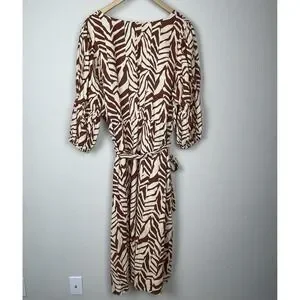 Eloquii Plus Size 20 Animal Print Linen Blend Belted Boho Coastal Dress