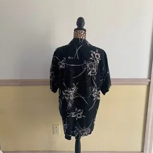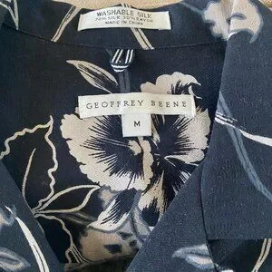 Geoffrey Beene Men's Navy Tan Silk Blend Floral Hawaiian Shirt Size M