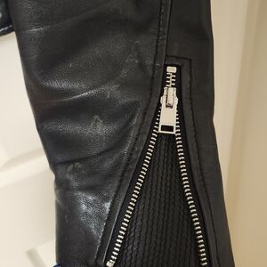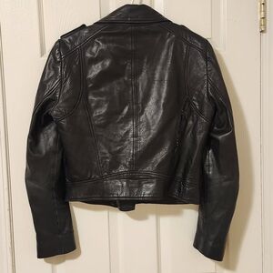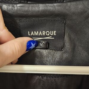 Elevate your style with the LAMARQUE black leather jacket. This sleek and versatile piece is perfect for any occasion. DOES sadly come with a rip previoua owner tried to repair- pretty wide but less than noticable