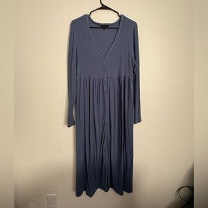 Elegant maxi dress by Quince. Features a button-down front. Long sleeves with a graceful flow.
