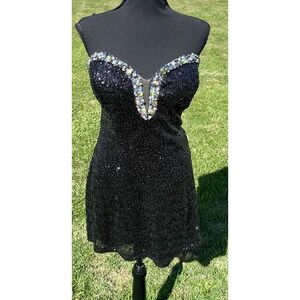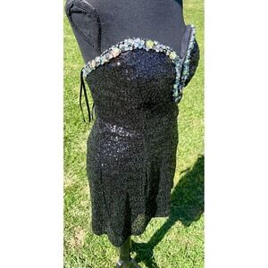 Alyce Paris Dress Womens 14 Black Sequin Beaded Strapless Sweetheart Mini Party