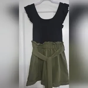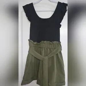 Stylish black top paired with an olive green short. Perfect for casual outings. I honestly don't remember the brand but never worn. Adorable for casual dressy summer outings.