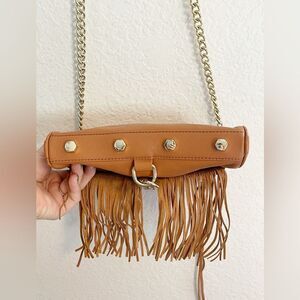 REBECCA MINKOFF Fringe Mini MAC Leather Crossbody Bag light Brown