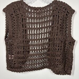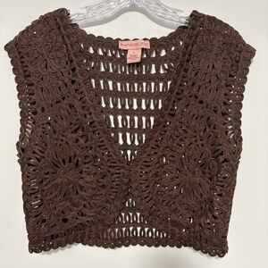 VTG Bandolino Women Floral Crochet Vest Size L Brown Forest Fairy Festival Boho