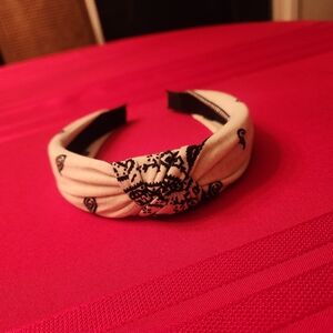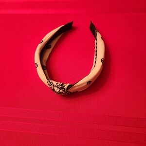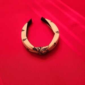 Chic headband with a black and white design. Features a stylish knot detail. Perfect for any look.