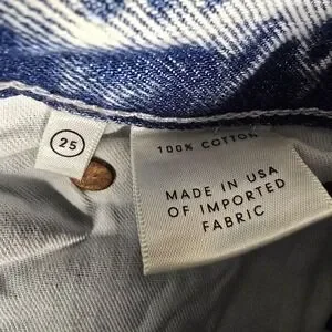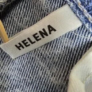 Tag details: Interior labels show size 25, fiber content 100% cotton, Made in USA of imported fabric, and style name tag reading HELENA.