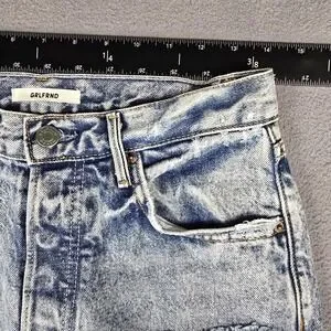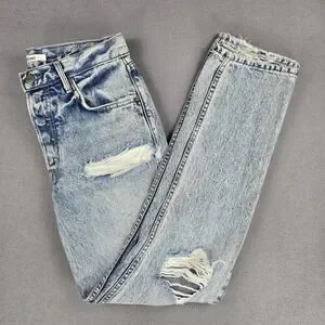 Grlfrnd Helena Jeans Womens 25 Blue Acid Wash High Rise Straight Distressed