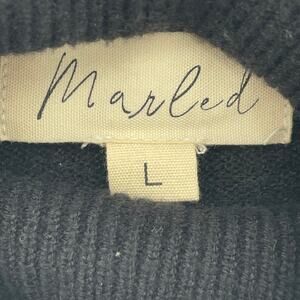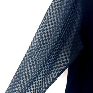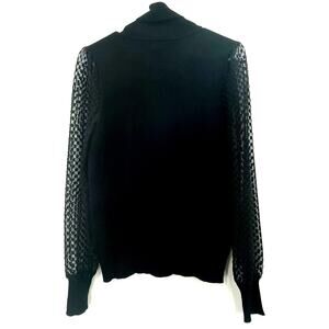 Marled Women's Turtleneck Blouse, Long Sheer Swiss Dot Lace Sleeves, Black Sz. L