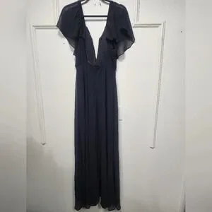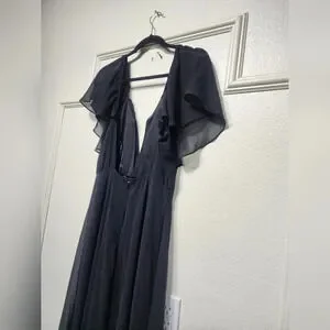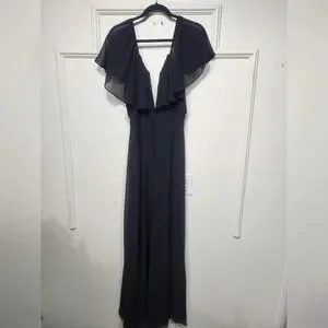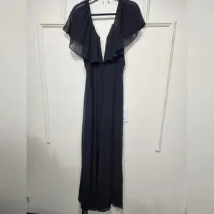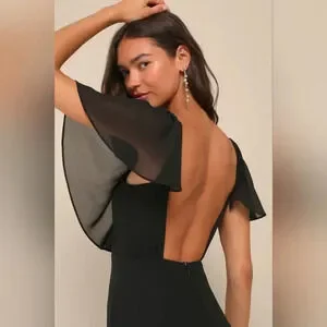Lulus Stunning Demeanor Black Flutter Sleeve Backless Maxi Dress M Wedding NWOT. See all pictures for details. Currently SOLD OUT online.