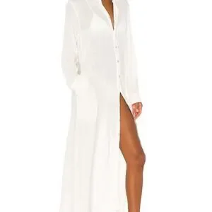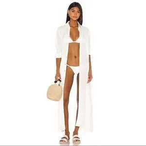 Achieve an effortlessly chic and sophisticated look with PQ Swim's long sleeve black button-down beach cover-up. Whether you choose to wear it over your swimsuit for a stylish cover-up or belt it up as a lightweight, boho dress, this versatile piece offers endless possibilities. The classic black color and button-down design make it a timeless addition to your beach or vacation wardrobe.