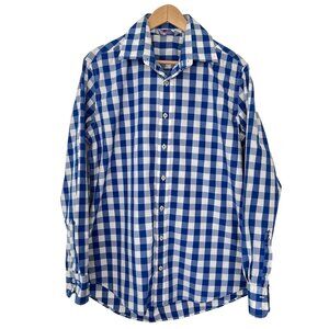 Boden Men Blue White Gingham Check Button Down Long Sleeve Shirt Preppy Size 16"