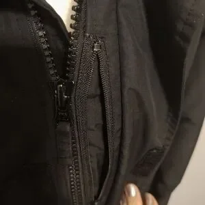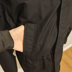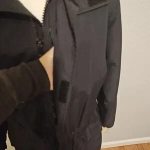 Stay warm and stylish with this nice men's or women's jacket. The snap-on hood is not available. You can findsnap -on hoods online. Perfect for any weather, it offers comfort and durability. This jacket is in excellent condition. There is a zipper and Velcro closures and LOTS of pockets inside and out! This would make a great ski or winter hiking jacket. This can be for men or women. I'd say this size women would be a medium to large fit.