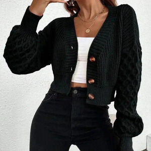 Black Casual Women's Drop Shoulder Button Front Cardigan