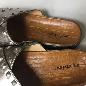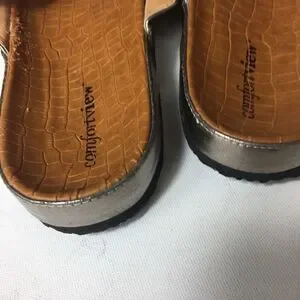 Comfort view women’s footbed studded bronze sandals pre owned in good used condition the sole show little peeling see pictures size 10.5WW