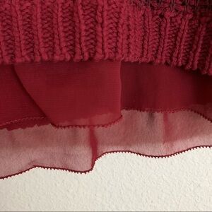 Beautiful knit sweater with peekaboo tulle at the bottom hem.
