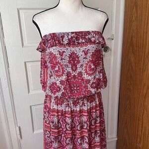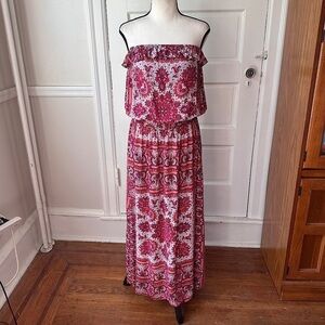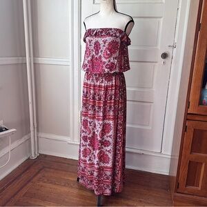 3/$20 💥 Voyage Blouson Strapless Maxi Dress Ruffle Smocked Pink Boho Paisley M