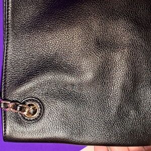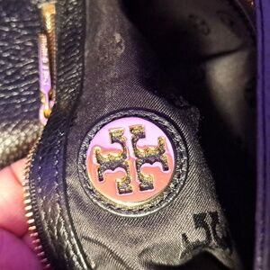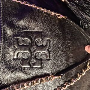 this beautiful 😍 tory burch is used AS SEEN IN THE PICTURES and in great condition. Material: Black pebbled leather. TAKING OFFERS