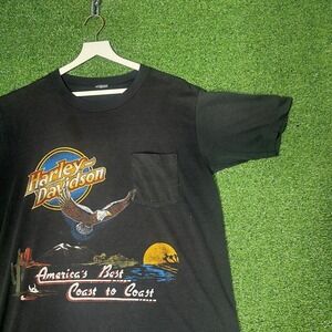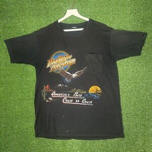 Vintage Harley Davidson pocket t-shirt 'America's Best Coast to Coast'.