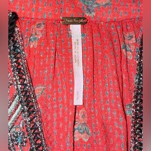 Free People”But I Like It”Boho Peasant Top,Size-Small,(? Medium P2P flat lay approx-22”-23.5”), Shoulder-Bottom approx-22”,Made of-100% Viscose,in GUC/Preloved,a Boho,pullover v-neck-key hole,metallic embroidered with front tasseled closure or can be left open w/a relaxed swingy style that’s great for all seasons,Please ask any ?’s u may have before purchasing,bundle & save,open to reasonably offers on all items,scroll further down in closet bec have over 4,100 items & Ty for checking out my closet I appreciate you 😊
