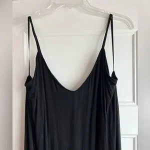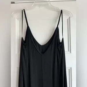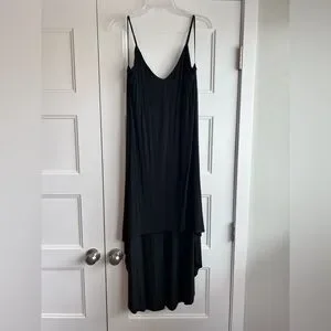 The sleeveless dress boasts a spaghetti strap scoop neckline, offering a modern and elegant look. Its flowing silhouette and high-low hemline.