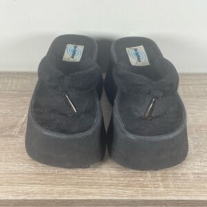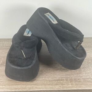 Elevate your look with these sleek black platform sandals. Perfect for adding height and style to any outfit.