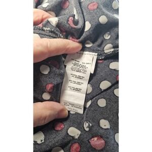 Karen Kane midi swing dress features a classic polka dot print with a artistic twist, incorporating white and deep red dots on a black background. Made in the USA, this stretchy jersey knit piece offers a relaxed A-line silhouette that drapes beautifully. In very good pre-owned condition with no stains, rips, or tears.