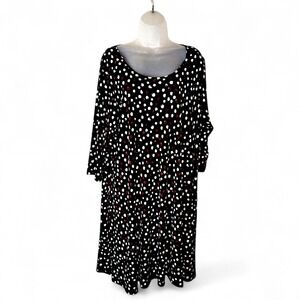 Karen Kane Plus Size 3X Polka Dot Midi Dress Black White Red 3/4 Sleeve USA