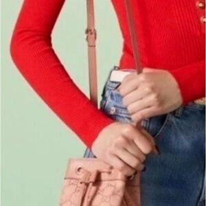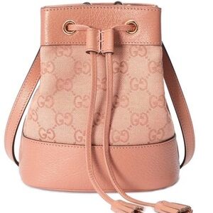 NEW Gucci Peach SALMON MINI Monogram Bucket CROSSBODY Bag