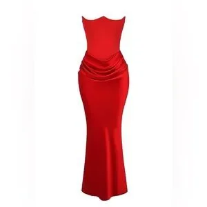 Make a statement with this vibrant red strapless dress from House of CB. Ideal for elegant events.