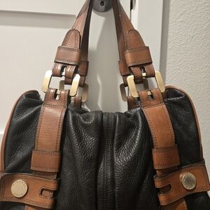 Vintage Michael Kors Harness Black Pebbled Leather Handbag with Gold Accents