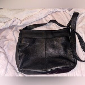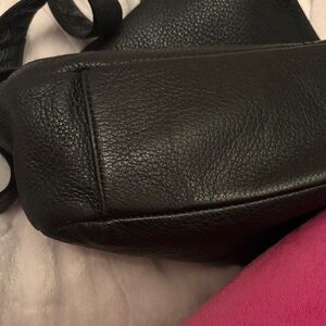 Elevate your style with this chic black leather crossbody bag. Perfect for daily use, its sleek design offers both functionality and elegance. Notice: a bit of wear in picture 5,7,8. Still in great condition just well loved 🩷