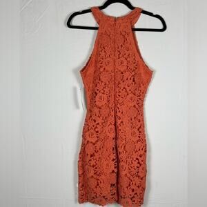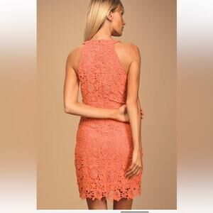 Lulus Mini Dress Love Poem Coral Orange Lace- S NWT