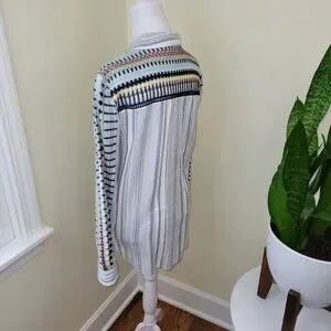 Anthropologie The Cate Classic Button Up Embroidered Stripe Shirt Women's SZ XS