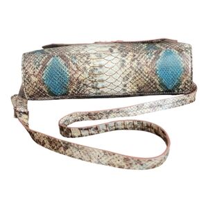 Elevate your style with this chic snakeskin patterned shoulder bag. Featuring a blend of brown and blue tones, this bag is perfect for any occasion.