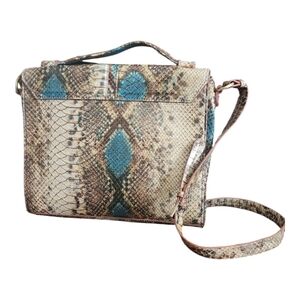 Rachel Roy Brown And Blue Faux Snakeskin Patterned Shoulder Bag Purse