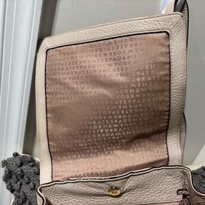Inside is one zip and 2 slip. Adjustable back straps. Flap top with gold tassel pull close.