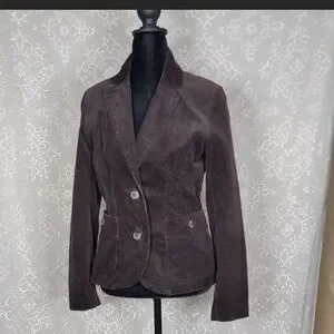 Structured chocolate brown corduroy blazer with a flattering tailored fit.