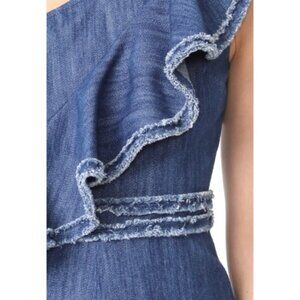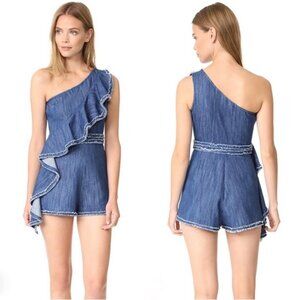 Alexis Blakely Denim One Shoulder Ruffle Romper Size XS Blue