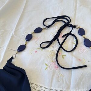 vintage lipstick y2k navy bead halter cowl neck top (size m-l)