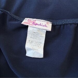 Y2K Navy Beaded Halter Cowl Neck Blouse Lipstick